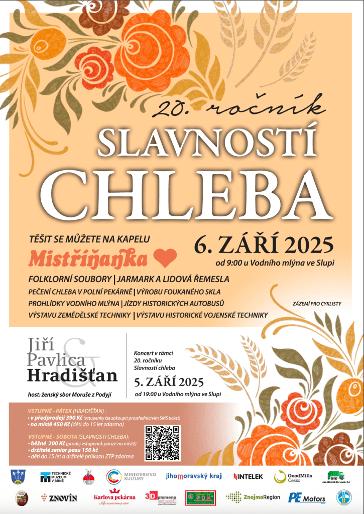 6.9.2025 budeme vystupovat v rámci 20. ročníku SLAVNOSTÍ CHLEBA u Vodního mlýna ve Slupi.
